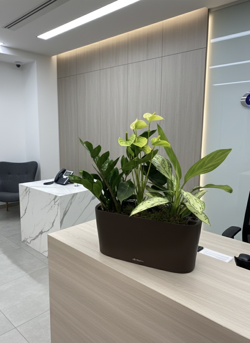 Specifický a harmonický tvar samozavlažovacího květináče z řady PREMIUM v kompletním provedení! Ideální řešení krásy na parapet, stůl, poličku, ale i pracovní stůl nebo recepci. Velikost 40x14/18 cm