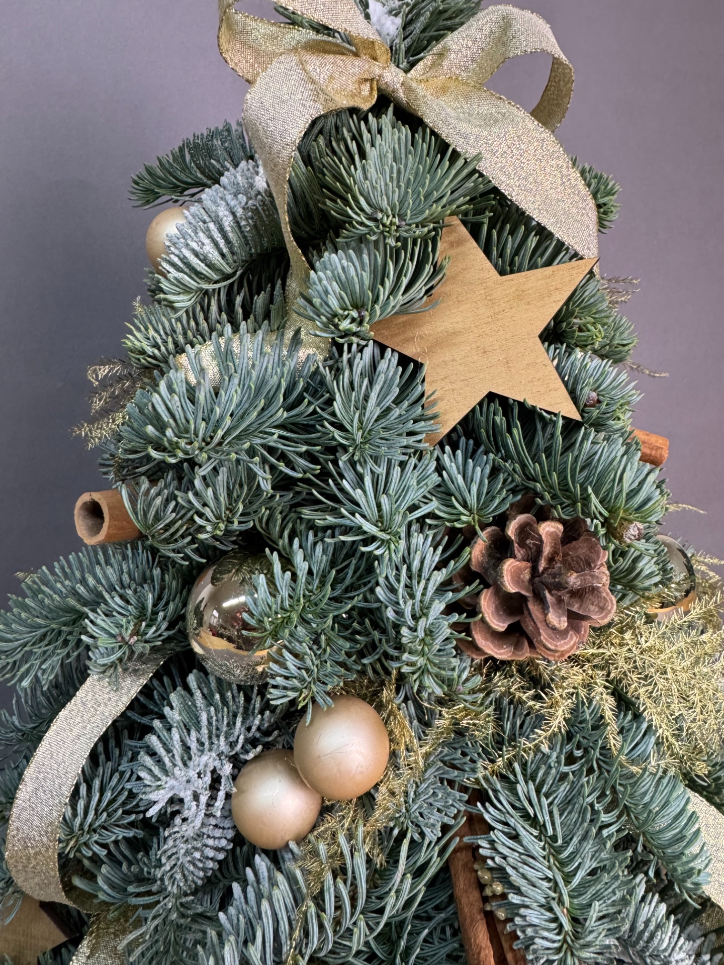Přirozená vůně jedle Nobilis, ruční vazba a kvalitní čerstvé větve, dlouhá výdrž bez opadávání, elegantní vzhled vhodný do moderních i tradičních interiérů, ideální volba tam, kde není místo pro velký stromek